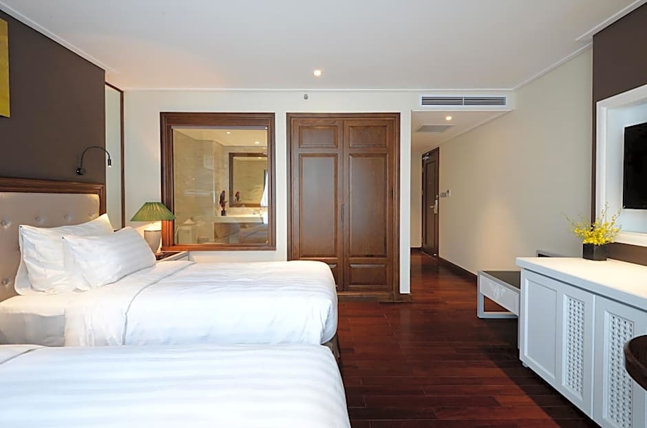 Offering free toiletries and bathrobes, this twin/double room includes a private bathroom with a bath, a hairdryer and slippers. The spacious air-conditioned twin/double room offers a flat-screen TV with cable channels, soundproof walls, a mini-bar, a dining area as well as a quiet street view.